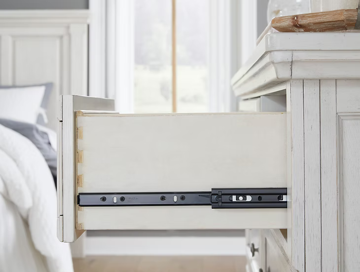 - Smooth-gliding drawers with dovetail construction and metal ball bearing side glides
