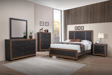 5pcs: Bed, Dresser, Mirror, Nightstand and Chest.