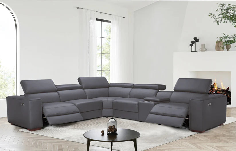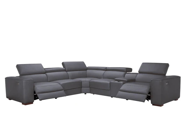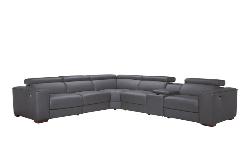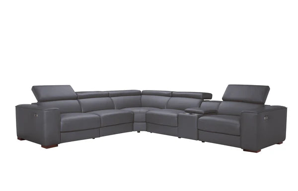 Experience ultimate comfort with the MI-633 Picasso II sectional, featuring sumptuous Italian leather in rich dark grey. This sophisticated piece combines power reclining technology with an adjustable headrest for customized support, plus convenient Type A+C ports to keep your devices charged. The power armless recliner provides flexible seating arrangements, while the integrated storage console with cupholder and wireless charging keeps everything you need close at hand. Elevate your living space with a sectional that seamlessly blends relaxation, technology, and timeless elegance.