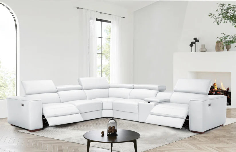 Experience ultimate comfort with the MI-633 Picasso II sectional, featuring sumptuous Italian leather in rich white. This sophisticated piece combines power reclining technology with an adjustable headrest for customized support, plus convenient Type A+C ports to keep your devices charged. The power armless recliner provides flexible seating arrangements, while the integrated storage console with cupholder and wireless charging keeps everything you need close at hand. Elevate your living space with a sectional that seamlessly blends relaxation, technology, and timeless elegance.