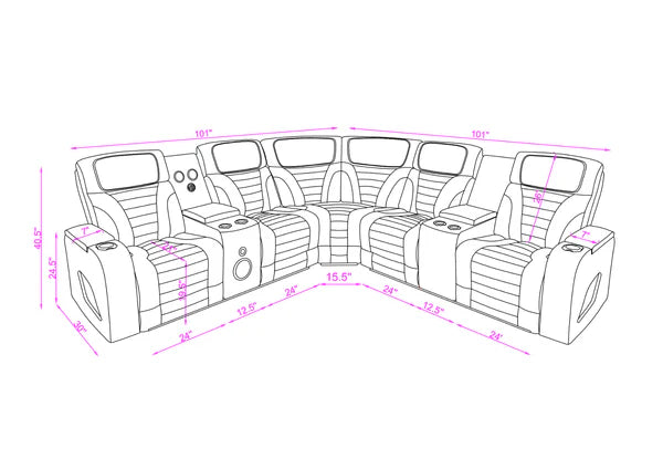 LAF: Power Reclining (1), Storage Console with Cupholders, USB, Bluetooth Speakers, LED, Storage Arm with Cupholders