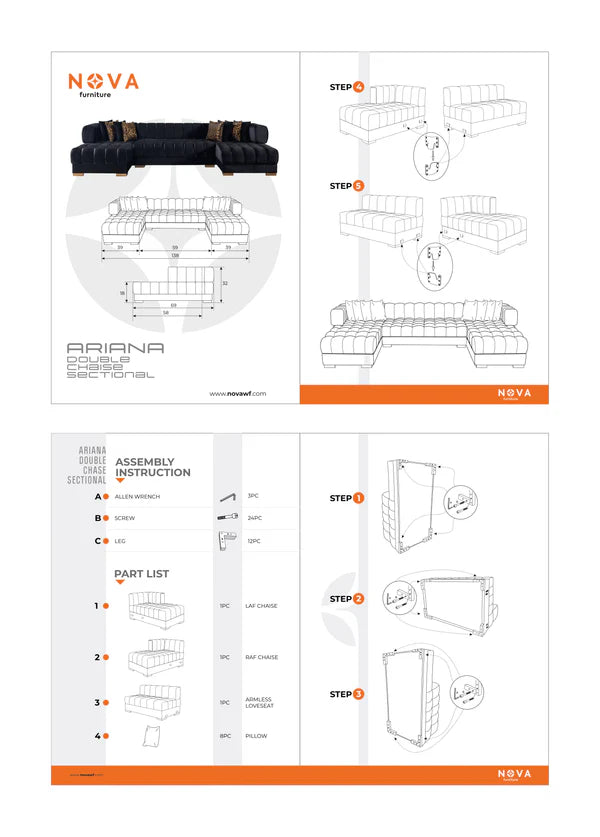 Right Corner Chaise: W 68.89" H 32.67" D 38.18" - 119 LBS