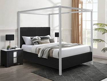 Redefine luxury and style in your bedroom with this stunning canopy bed, designed to make a bold yet elegant statement. Its sleek, minimalist frame provides a modern take on timeless sophistication, while the upholstered headboard, featuring soft vertical channeling, adds texture and an inviting touch of comfort. Perfectly suited for creating a cozy sanctuary, the open canopy design offers endless opportunities for customization with drapes, lights, or greenery to reflect your unique style. Transform your space into a serene retreat that combines contemporary aesthetics with unparalleled comfort and versatility.