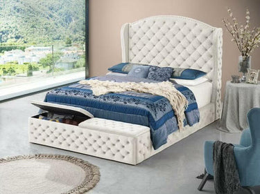 Laura Cream Velvet Platform Footboard Storage Bed King or Queen