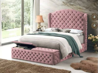 Laura Pink Velvet Platform Footboard Storage Bed King or Queen