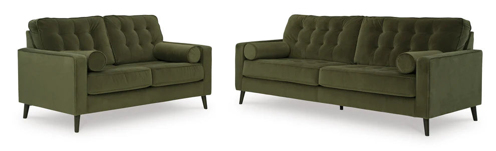 Make a bold style statement without overspending. The Reveon Lakes Sofa & Loveseat blends contemporary lines with rich olive velvet, delivering a luxe look that instantly elevates your living room.